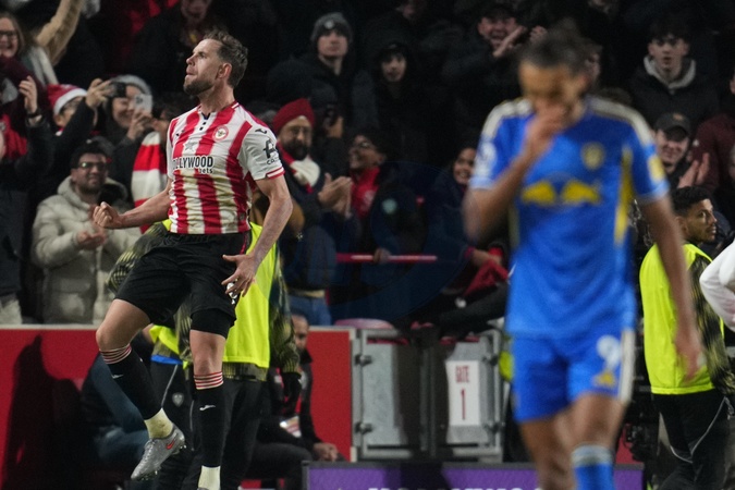 Jordan Henderson of Brentford celebrates goal to make it 1-0 during the Premier League match Brentford vs Leeds United at The Gtech Community Stadium, London, United Kingdom, 14th December 2025, Credit:Harvey Murphy/News Images / Avalon