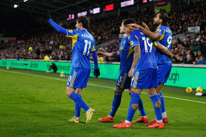 Leeds united players celebrate 1-1 equaliser during the Premier League match Brentford vs Leeds United at The Gtech Community Stadium, London, United Kingdom, 14th December 2025, Credit:Harvey Murphy/News Images / Avalon