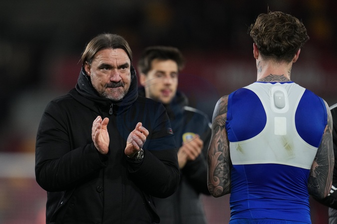Daniel Farke manager of Leeds United applauds away support during the Premier League match Brentford vs Leeds United at The Gtech Community Stadium, London, United Kingdom, 14th December 2025, Credit:Harvey Murphy/News Images / Avalon