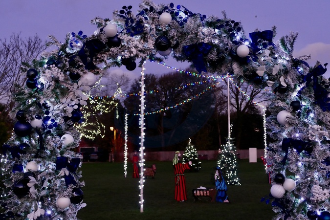 A traditional nativity scene at dusk on the village green in the pretty village of Milford on Sea. The three kings and the nativity scene were created by local Milford on Sea artist, Gillian Key., Credit:Geoffrey Swaine / Avalon