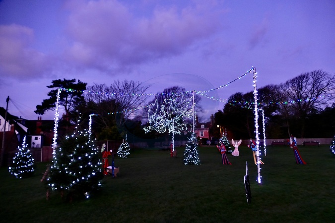 A traditional nativity scene at dusk on the village green in the pretty village of Milford on Sea. The three kings and the nativity scene were created by local Milford on Sea artist, Gillian Key., Credit:Geoffrey Swaine / Avalon