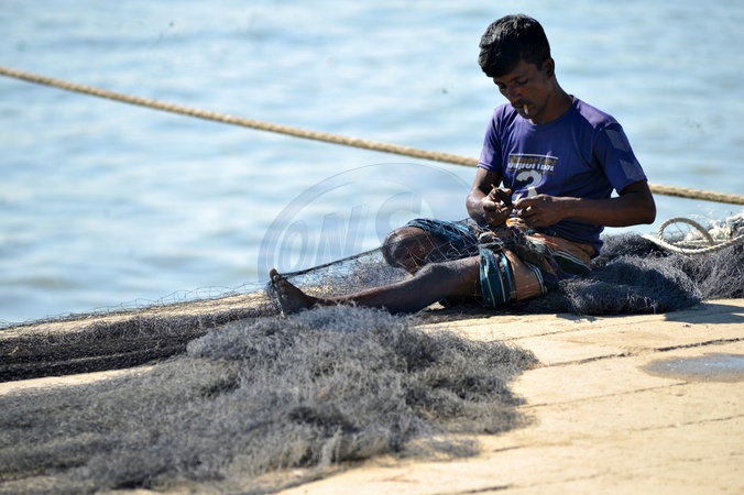 Chattogram, Bangladesh — Fisherman mends and repairs his fishing net on the bank of the Karnaphuli River in Chattogram. Net mending is a routine but essential task for riverine fishermen, reflecting the enduring dependence of coastal communities on traditional fishing practices for their livelihoods., Credit:Md Rafayat Haque Khan / Avalon