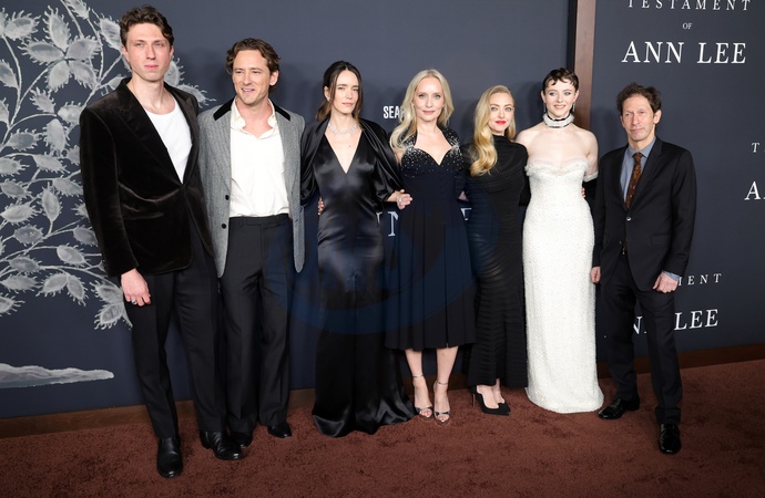 14 December 2025 . Los Angeles, California - Jamie Bogyo, Lewis Pullman, Stacy Martin, Mona Fastvold, Amanda Seyfried, Tomasin Mckenzie, Tim Blake Nelson, At Los Angeles Premiere Of Searchlight Pictures' "The Testament Of Ann Lee" held at Linwood Dunn Theater in Los Angeles., Credit:Sadou Faye / Avalon