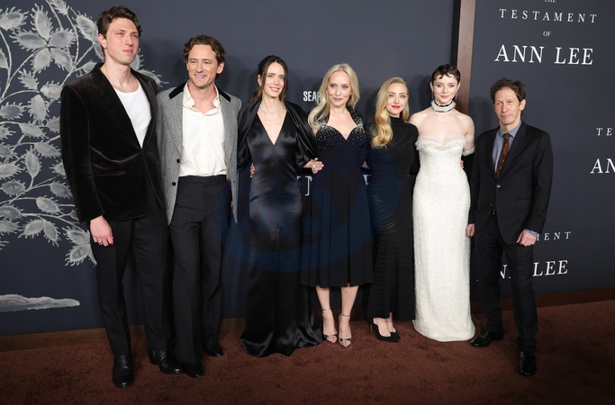 14 December 2025 . Los Angeles, California - Jamie Bogyo, Lewis Pullman, Stacy Martin, Mona Fastvold, Amanda Seyfried, Tomasin Mckenzie, Tim Blake Nelson, At Los Angeles Premiere Of Searchlight Pictures' "The Testament Of Ann Lee" held at Linwood Dunn Theater in Los Angeles., Credit:Sadou Faye / Avalon