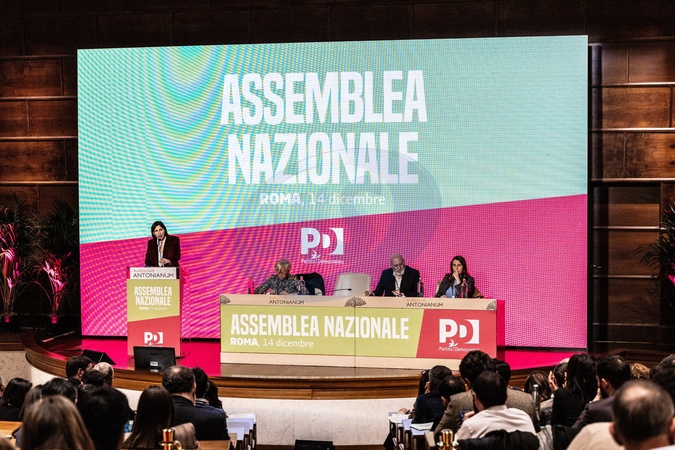 Democratic Party National Assembly, pictured are Elly Schlein, Stefano Bonaccini, Loredana Capone, and Chiara Gribaudo. . Rome, Italy 14 December 2025, Credit:Francesca Bolla / Avalon