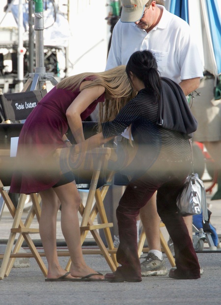 Jennifer Aniston talks to director Rob Reiner on the set of "The Graduate 2"