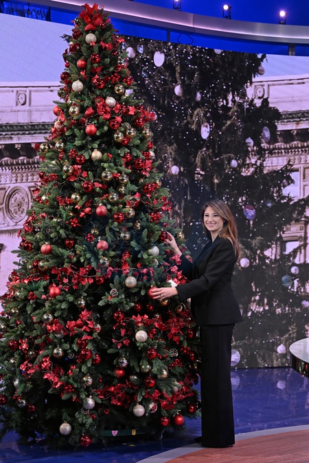 Rai 1 In the studio on the television program 1mattina News with the Christmas Tree