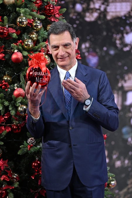 Rai 1 In the studio on the television program 1mattina News with the Christmas Tree