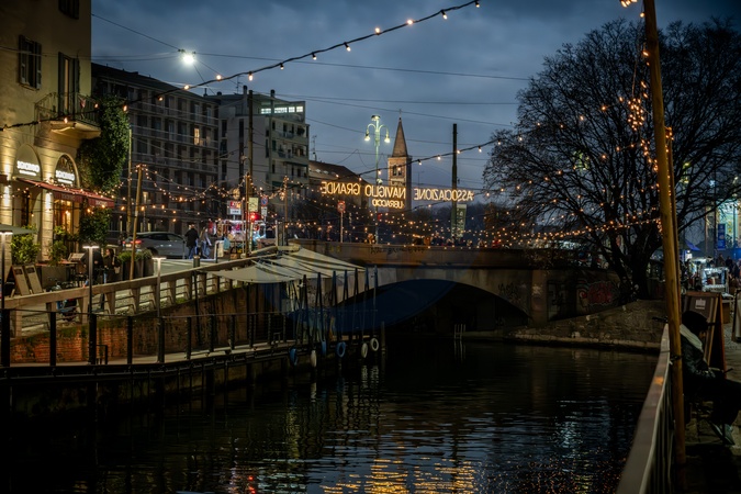 Christmas lights on the Naviglio Grande canal. Milan, Italy 14 Decemebr 2025, Credit:Nicola Marfisi / Avalon
