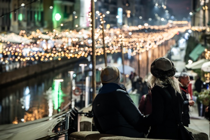 Christmas lights on the Naviglio Grande canal. Milan, Italy 14 Decemebr 2025, Credit:Nicola Marfisi / Avalon