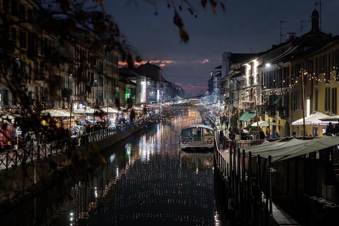 Christmas lights on the Naviglio Grande canal. Milan, Italy 14 Decemebr 2025, Credit:Nicola Marfisi / Avalon