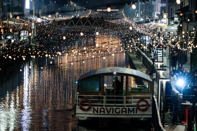 Christmas lights on the Naviglio Grande canal. Milan, Italy 14 Decemebr 2025, Credit:Nicola Marfisi / Avalon