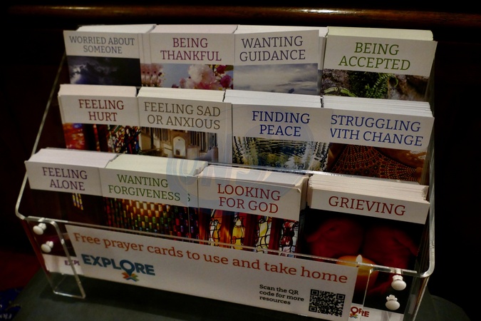 A selection of prayer cards to take from a local church. Explore is for anyone who wants to find out more about Christian faith and spirituality and provides three types of resource., Credit:Geoffrey Swaine / Avalon