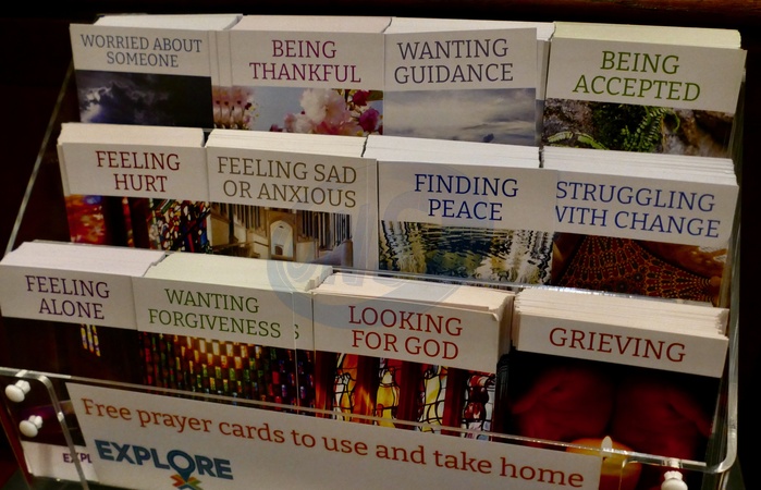 A selection of prayer cards to take from a local church. Explore is for anyone who wants to find out more about Christian faith and spirituality and provides three types of resource., Credit:Geoffrey Swaine / Avalon