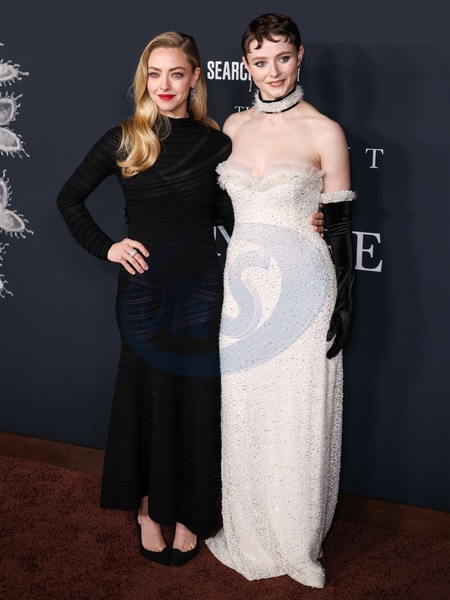 HOLLYWOOD, LOS ANGELES, CALIFORNIA, USA - DECEMBER 14: American actress Amanda Seyfried wearing Giorgio Armani and New Zealand actress Thomasin McKenzie wearing Rodarte FW25 RTW arrive at the Los Angeles Premiere Of Searchlight Pictures' 'The Testament Of Ann Lee' held at the Academy of Motion Picture Arts and Sciences - Linwood Dunn Theater on December 14, 2025 in Hollywood, Los Angeles, California, United States., Credit:Xavier Collin / Avalon