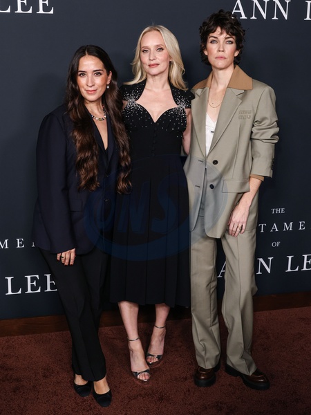HOLLYWOOD, LOS ANGELES, CALIFORNIA, USA - DECEMBER 14: Sofia Subercaseaux, Norwegian filmmaker and actress Mona Fastvold wearing Prada and Celia Rowlson-Hall wearing Miu Miu arrive at the Los Angeles Premiere Of Searchlight Pictures' 'The Testament Of Ann Lee' held at the Academy of Motion Picture Arts and Sciences - Linwood Dunn Theater on December 14, 2025 in Hollywood, Los Angeles, California, United States., Credit:Xavier Collin / Avalon