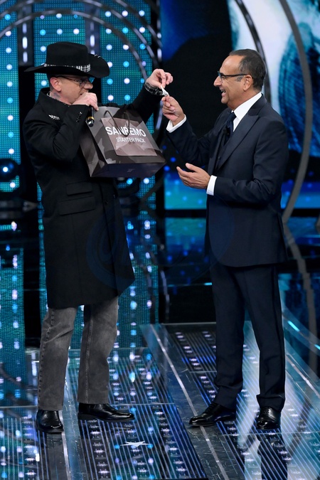 December 14, 2025, Sanremo, "Sarà Sanremo" 2025 - Pictured: Jay Ax, Carlo Conti, Credit:AGF / Avalon