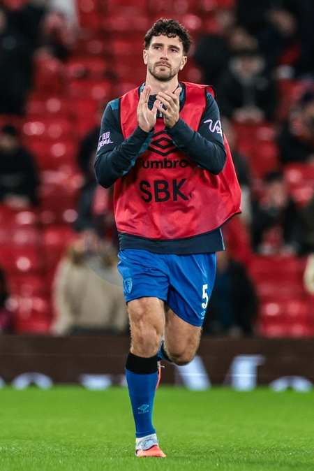 Marcos Senesi of Bournemouth in the pregame warmup session during the Premier League match Manchester United vs Bournemouth at Old Trafford, Manchester, United Kingdom, 15th December 2025, Credit:Mark Cosgrove/News Images / Avalon