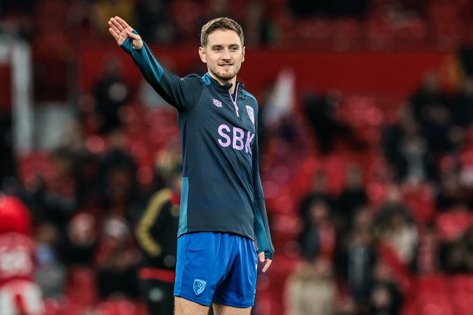 David Brooks of Bournemouth in the pregame warmup session during the Premier League match Manchester United vs Bournemouth at Old Trafford, Manchester, United Kingdom, 15th December 2025, Credit:Mark Cosgrove/News Images / Avalon