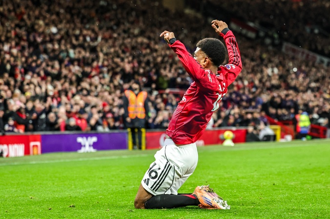 Amad Diallo of Manchester Untied celebrates his goal to make it 1-0 during the Premier League match Manchester United vs Bournemouth at Old Trafford, Manchester, United Kingdom, 15th December 2025, Credit:Mark Cosgrove/News Images / Avalon
