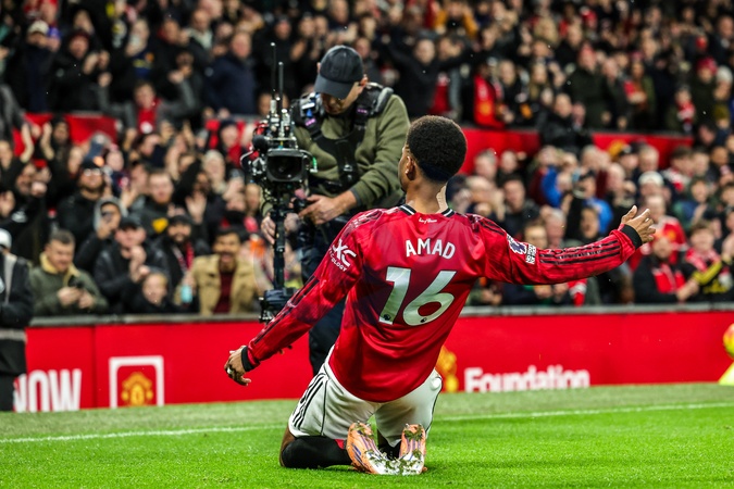 Amad Diallo of Manchester Untied celebrates his goal to make it 1-0 during the Premier League match Manchester United vs Bournemouth at Old Trafford, Manchester, United Kingdom, 15th December 2025, Credit:Mark Cosgrove/News Images / Avalon