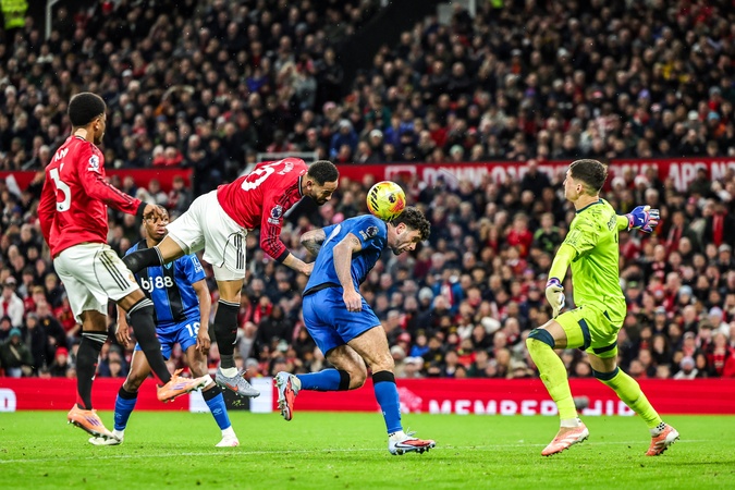 Matheus Cunha of Manchester Untied heads on goal during the Premier League match Manchester United vs Bournemouth at Old Trafford, Manchester, United Kingdom, 15th December 2025, Credit:Mark Cosgrove/News Images / Avalon