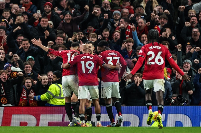 Matheus Cunha of Manchester Untied celebrates his goal to make it 4-3 during the Premier League match Manchester United vs Bournemouth at Old Trafford, Manchester, United Kingdom, 15th December 2025, Credit:Mark Cosgrove/News Images / Avalon