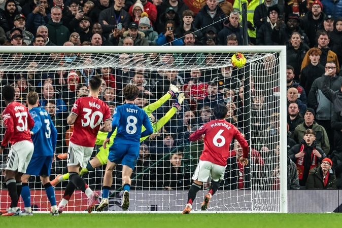 Bruno Fernandes of Manchester Untied scores to make it 3-3 during the Premier League match Manchester United vs Bournemouth at Old Trafford, Manchester, United Kingdom, 15th December 2025, Credit:Mark Cosgrove/News Images / Avalon