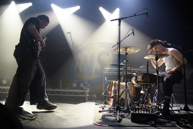 Bassist/vocalist Tom Rhodes and Drummer/vocalist Euan Woodman of english punk duo GANS performs at Koko in London, England, UK on Monday 15 December 2025., Credit:Justin Ng / Avalon