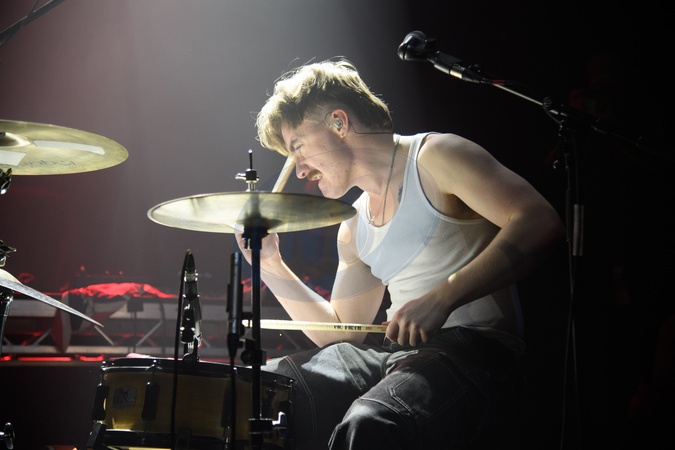 Drummer/vocalist Euan Woodman of english punk duo GANS performs at Koko in London, England, UK on Monday 15 December 2025., Credit:Justin Ng / Avalon