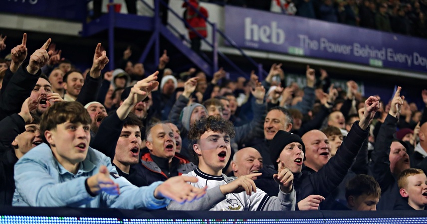 Derby fans sing happy birthday to Dion Sanderson of Derby County after the Sky Bet Championship match Sheffield Wednesday vs Derby County at Hillsborough, Sheffield, United Kingdom, 15th December 2025, Credit:Sam Eaden/News Images / Avalon