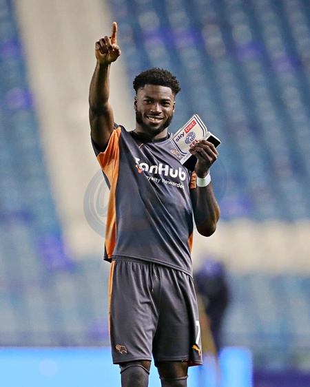 Patrick Agyemang of Derby County celebrates with his player of the match award after the Sky Bet Championship match Sheffield Wednesday vs Derby County at Hillsborough, Sheffield, United Kingdom, 15th December 2025, Credit:Sam Eaden/News Images / Avalon