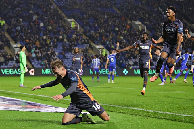 Liam Thompson of Derby County celebrates his goal during the Sky Bet Championship match Sheffield Wednesday vs Derby County at Hillsborough, Sheffield, United Kingdom, 15th December 2025, Credit:Sam Eaden/News Images / Avalon