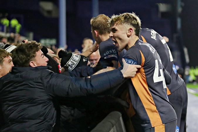 Derby County celebrate their second goal scored by Liam Thompson of Derby County during the Sky Bet Championship match Sheffield Wednesday vs Derby County at Hillsborough, Sheffield, United Kingdom, 15th December 2025, Credit:Sam Eaden/News Images / Avalon