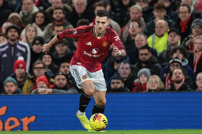 Diogo Dalot of Manchester United with the ball during the Premier League match Manchester United vs Bournemouth at Old Trafford, Manchester, United Kingdom, 15th December 2025, Credit:Mark Cosgrove/News Images / Avalon