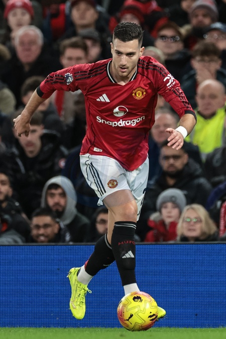 Diogo Dalot of Manchester United with the ball during the Premier League match Manchester United vs Bournemouth at Old Trafford, Manchester, United Kingdom, 15th December 2025, Credit:Mark Cosgrove/News Images / Avalon