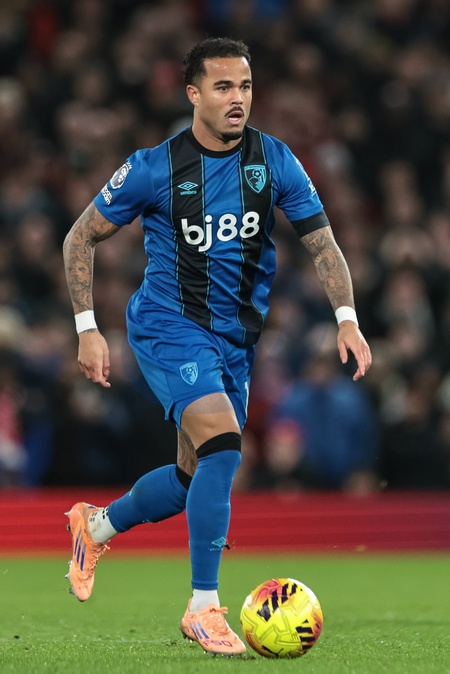 Justin Kluivert of Bournemouth breaks with the ball during the Premier League match Manchester United vs Bournemouth at Old Trafford, Manchester, United Kingdom, 15th December 2025, Credit:Mark Cosgrove/News Images / Avalon