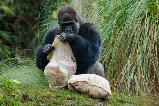 ZSL London Zoo, Regent's Park, London, UK. 16th December 2025. ZSL London Zoo's Western Lowland Gorillas check their festive stockings for treats, gifted by zookeepers, in their Gorilla Kingdom habitat, as the conservation zoo celebrates its Magic of Christmas event., Credit:Photo by Amanda Rose / Avalon