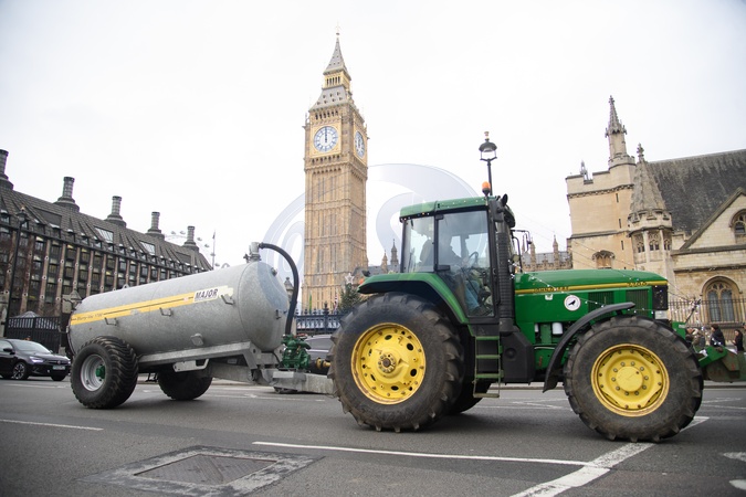 A farmer in a slurry tanker drives past Parliament Square in London, England, UK on Tuesday 16 December, 2025 as part of a protest over changes to inheritance tax for farms., Credit:Justin Ng / Avalon