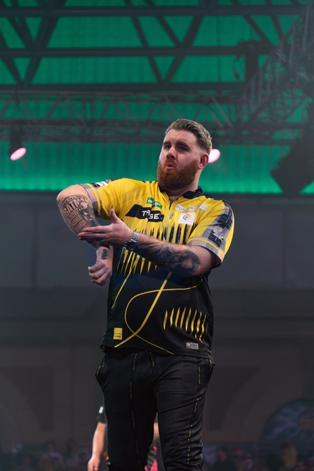 Scott Williams in action during day five of the 2025/26 Paddy Power World Darts Championship at Alexandra Palace LONDON, ENGLAND on 15th DECEMBER 2025., Credit:Oleksii Ovcharenko / Avalon