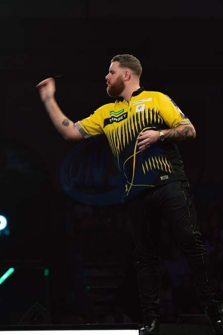 Scott Williams in action during day five of the 2025/26 Paddy Power World Darts Championship at Alexandra Palace LONDON, ENGLAND on 15th DECEMBER 2025., Credit:Oleksii Ovcharenko / Avalon