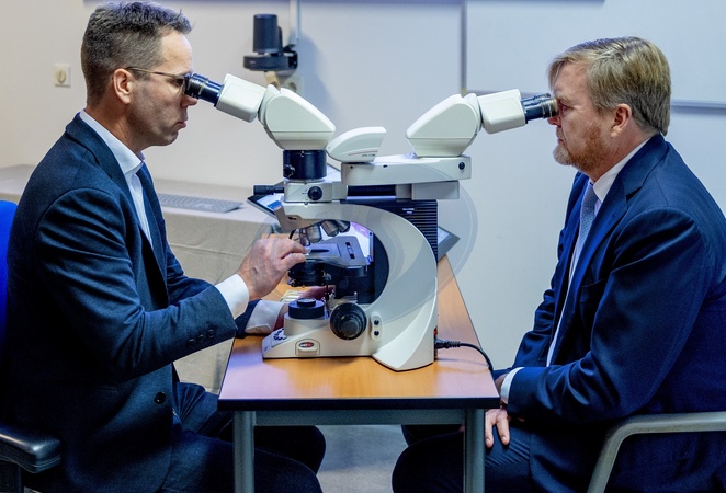 Leiden, The Netherlands, 2025-12-16 12:36:15LEIDEN, 16-12-2025, LUMC. King Willem-Alexander, accompanied by the Minister of Health, Welfare and Sport, Jan Anthonie Bruijn, is paying a working visit to Leiden University Medical Center (LUMC) in Leiden. The visit is part of the discussion on future-proof healthcare and the impact of an aging population and staff shortages. PHOTO: NLBeeld/Patrick van Emst, Credit:Avalon