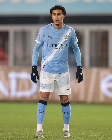 Emilio Lawrence of Manchester City during the Premier League International Cup match Manchester City vs Real Madrid at Joie Stadium, Manchester, United Kingdom, 16th December 2025, Credit:Mark Cosgrove/News Images / Avalon