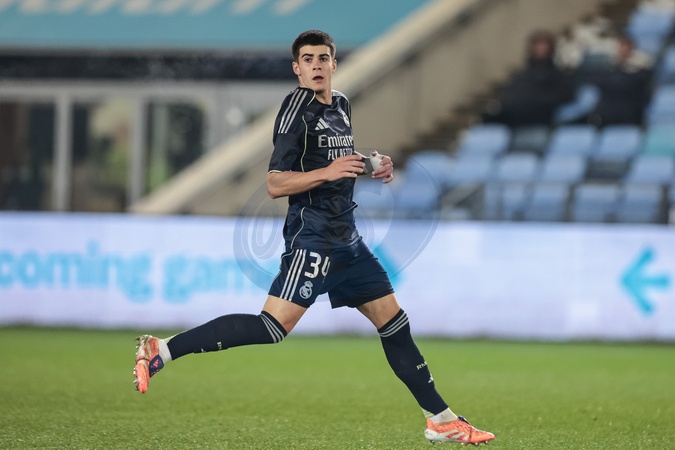 Alvaro Lezcano of Real Madrid during the Premier League International Cup match Manchester City vs Real Madrid at Joie Stadium, Manchester, United Kingdom, 16th December 2025, Credit:Mark Cosgrove/News Images / Avalon