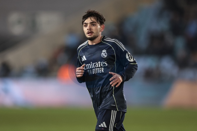 Jesus Fortea of Real Madrid during the Premier League International Cup match Manchester City vs Real Madrid at Joie Stadium, Manchester, United Kingdom, 16th December 2025, Credit:Mark Cosgrove/News Images / Avalon