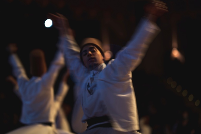 December 16, 2025, Konya. A moment from the ceremony. During the week dedicated to the 752nd anniversary of the death of the mystic Mevlana Celaleddin Rumi, musicians and semazen (whirling dervishes) performed a performance at the Mevlana Kultur Merkezi in Konya., Credit:Valeria Ferraro / Avalon