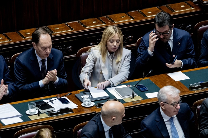 Chamber of Deputies, Communications from the Prime Minister in view of the European Council. Pictured are the Prime Minister Giorgia Meloni, the Minister for Relations with Parliament Luca Ciriani, and the Minister of Infrastructure and Transport Matteo Salvini. ROme, Dec 17th 2025, Credit:Francesco Fotia / Avalon