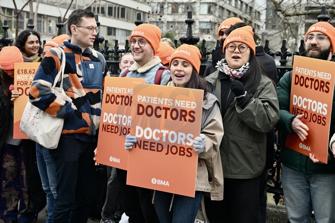 London, UK. BMA Resident Doctors Strike. Resident Doctors outside St Thomas's Hospital joined a British Medical Association (BMA) picket calling for jobs and pay restoration., Credit:Michael Melia / Avalon