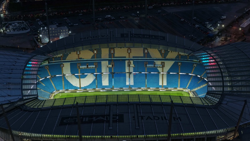 An aerial view of the Etihad Stadium during the Carabao Cup Quarter Final match Manchester City vs Brentford at Etihad Stadium, Manchester, United Kingdom, 17th December 2025, Credit:Mark Cosgrove/News Images / Avalon