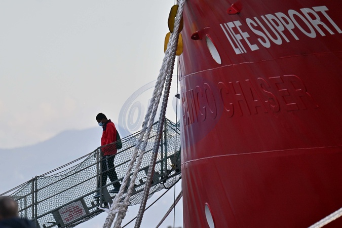 Emergency's Life Support ship arrives at the port to disembark 113 rescued shipwrecked people. Naples 17 December 2025, Credit:Felice De Martino / Avalon
